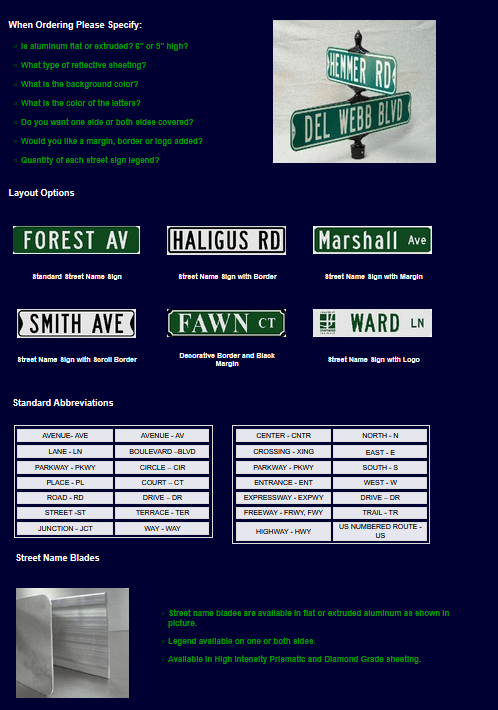 - On multi-lane streets that have a speed limit of 45 mph or greater, the lettering on ground mounted Street